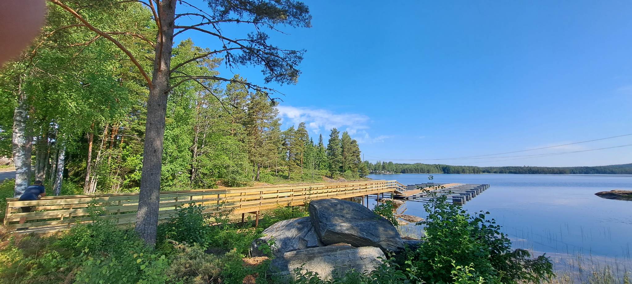 Nylig har vi montert og levert denne flytebryggen med ca.50 meter lengde, og en 23 meter pelebrygge. Pelebryggen vi har bygget er av miljøvennlige marine WOPAS påler og treverk på begge sider.